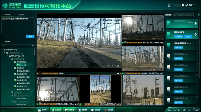 The emergency command video system aims to build an emergency service system with multi-angle access to the accident site and fast and smooth emergency repair channels, so as to realize multi-point inspection of substations, local targeted repairs, and simultaneous connection of multi-level users, enhance the speed of emergency response at the substation site, improve the emergency repair command ability and the efficiency of emergency incident handling
