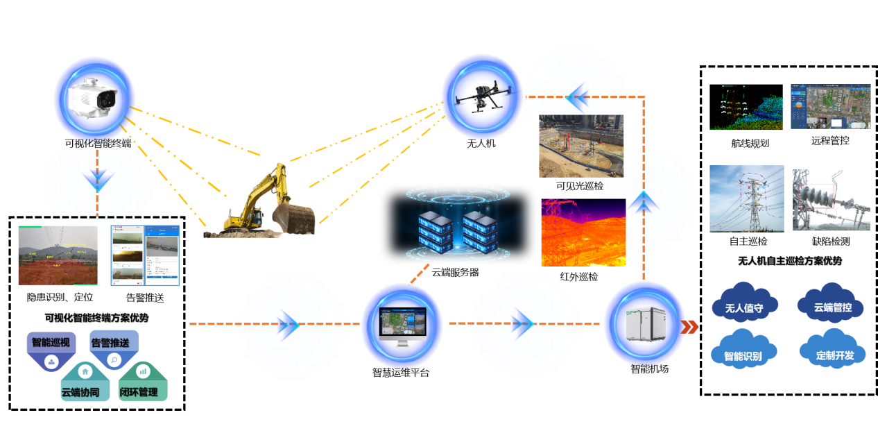 Self-developed AI algorithm supports the analysis of hidden defects of images in different scenarios, and injects AI algorithm capabilities into the edge computing platform to expand the real-time analysis capability of UAVs.